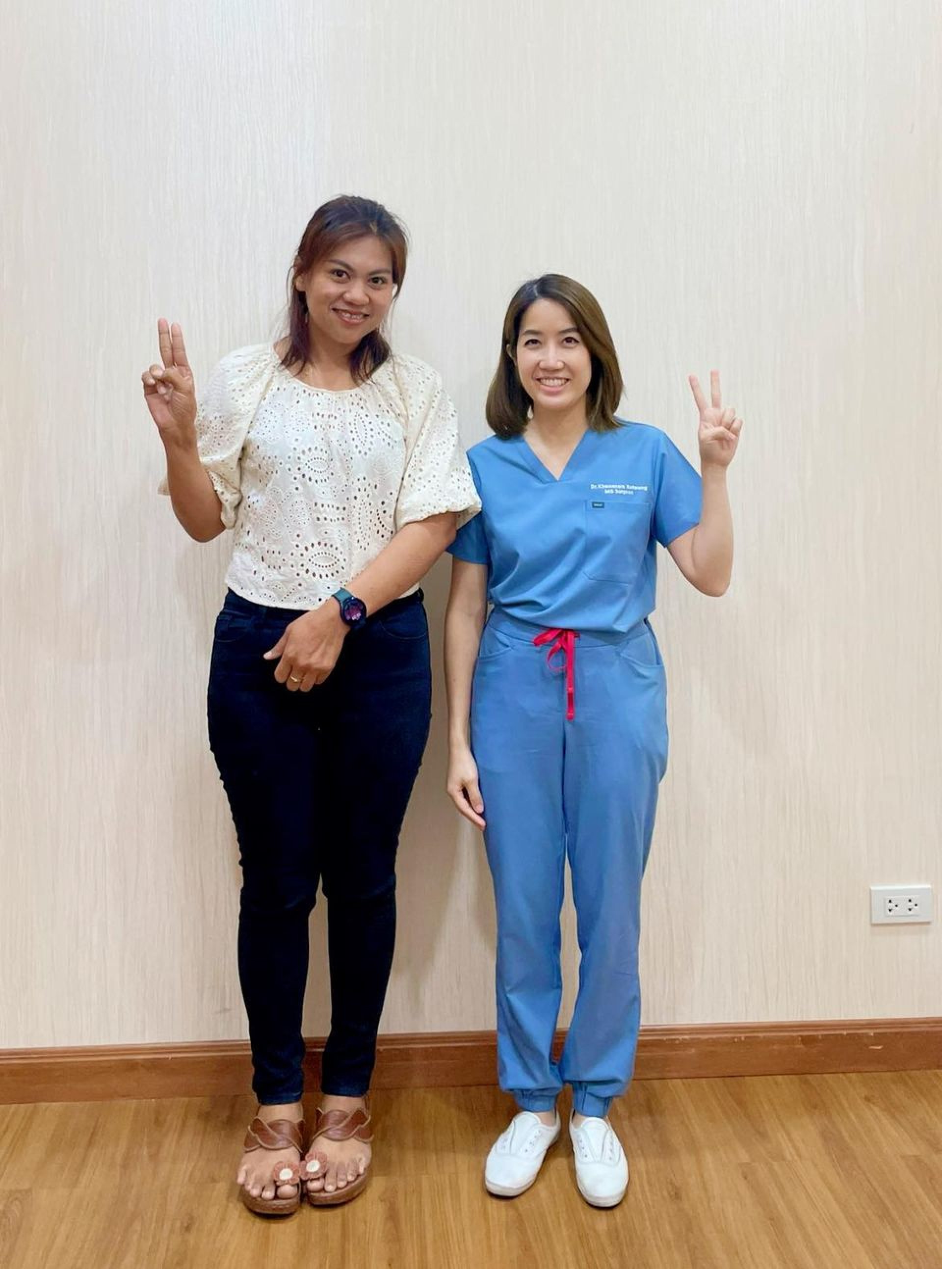 ขอขอบคุณ คุณหมอหยกและพี่พยาบาลทุกๆท่านนะคะที่ดูแลเป็นอย่างดี ที่มอบชีวิตใหม่ให้มีความสุขขึ้นมาได้ สุขภาพดีทุกอย่างหลังจากที่ผ่าตัดครบ 1 ปีแล้ว และมีการตรวจเลือดครั้งใหญ่คือทุกอย่างดีหมด จากที่เมื่อก่อน ก็เคยเป็นคนอ้วนคนๆหนึ่งที่พยายามทุกวิธีที่จะลดความอ้วน ใครว่าตรงไหนดีก็ซื้อกินไปเรื่อย จนร่างกายโยโย่ และเกิดการลดไม่ลง ทุกข์ใจเรื่องเสื้อผ้า เรื่องสัดส่วน จนหาเสื้อผ้าใส่ยากมาก จึงมีคนแนะนำให้เจอกับคุณหมอหยก และใช้เวลาศึกษาเรื่องการผ่าตัดกระเพาะเป็นเวลาแค่2เดือน จึงตัดสินใจที่จะผ่าตัด โดยส่วนตัวแล้ว อายุ 39 ก็คิดว่าตัวเองต้องลดยากแน่ๆ น้ำหนักไม่ลงเหมือนคนอื่นแน่นอน แต่สิ่งได้พบกับตัวเองคือลงทุกอย่าง น้ำหนักและสัดส่วน ตั้งต้นผ่า 115 สูง162 สัดส่วน 46-48-54 ปัจจุบัน 62 สัดส่วน 38-30-38 ที่สำคัญตัวเราเองโชคดีมากไม่มีย้วยเลยและแผลเป็นเล็กมากๆ ไปทำงานและไปพบผู้คนนั้นได้ความมั่นใจตัวเองและสนุกกับการได้ใส่เสื้อผ้าแบบที่ไม่เคยใส่มาก่อน ทั้งนี้ก็ขอเป็นกำลังใจให้กับพี่ๆน้องๆทุกคนที่กำลังคิดจะผ่าตัดหรือที่ผ่าตัดแล้ว ขอให้รอเจอกับความสุข ได้สุขภาพดีและได้พบกับความสนุกในอนาคตนะคะ